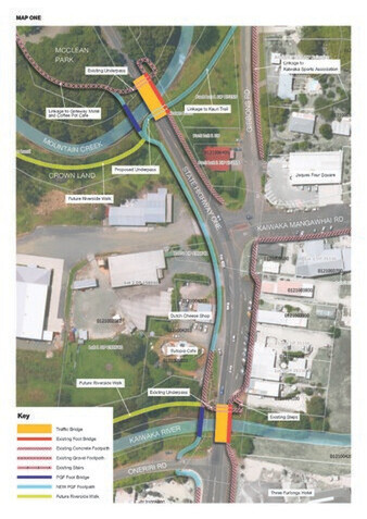 The second footbridge will be built at the northern end of town, across Mountain Creek. It will connect Kaiwaka township with the parkland and Coffee Pot to the north.
