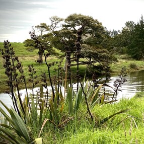 The basic idea is to turn Kaiwaka's face back towards the Kaipara. Kaiwaka has two streams running through town: Mountain Stream, and Kaipara River. These join together about 500m west of the town, and from there flow into the Kaipara Harbour. The idea is to provide a track following the edge of the estuary from McCleans Park around to the southern footbridge by Eutopia (the yello line indicated in the plan at left). The track will be an easy walking route for all residents' use. It may also support bikes. By providing pleasant rest and view points and interesting information along the way we plan to make this an attractive walking destination for locals and visitors alike.